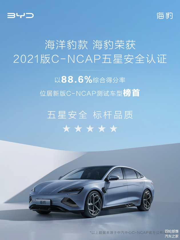 此次参与测试的车型为比亚迪海豹700km长续航后驱版,市场指导价为26.28万元。海豹不仅凭借88.6 %的综合得分率荣膺五星安全评价,而且还是自《C-NCAP管理规则》(2021年版)实施以来,综合得分率位列总榜单第一名的车型,在更严苛的标准下却取得了如此优秀的一个成绩,属实难能可贵。