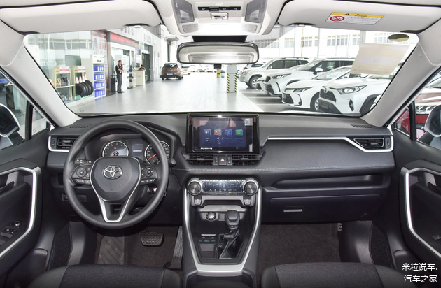 相较于外观的亮眼,内饰设计可以说是平淡无奇,有种丰田卡罗拉与丰田埃尔法的结合感。看起来粗犷,并且分辨率并不算高清的中控悬浮液晶屏幕,大面积的旋钮加物理按键,这些都是丰田汽车最喜欢使用的造型,只不过丰田RAV4荣放的挡把变得非常小巧,至少没有采用丰田卡罗拉那种廉价的造型,也算是该新车最大的优势之一了。