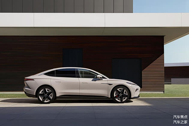 来到侧面能看到飞凡F7采用了豪华车比较常见的短前悬长后悬设计,三段式组合腰线以及较窄的窗线造型勾勒出非常运动的比例感。至于在尺寸方面,飞凡F7的车长达到了5米,轴距去到了3米,0.206Cd风阻系数也是当下中国品牌量产车中的顶流水平。