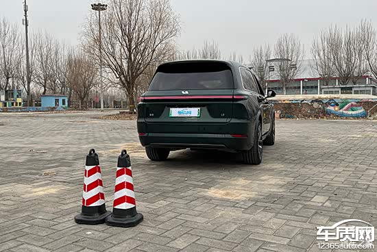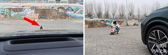 在测试前方视野环节,我们采用高70cm的桩桶作为参照物,随后调整车距,直至在主驾驶位可以看到桩桶上沿。经过测试,桩桶与车头最终测得的数据为3.8m。由于理想L9车头又高又宽大,因此对前方视野造成一定影响。