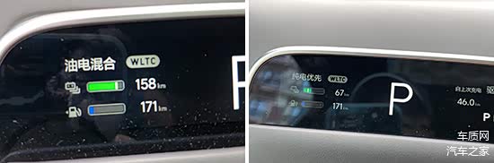 在实际测试中,测试人员晚高峰期间从家中出发,车内空调热风开启自动模式,以平均速度38±2km/h的车速在纯电模式下进行测试。行驶路线途径城市快速路以及城市环路拥堵路段(占比为20%),到达目的地时,车辆的公里数增加58km,续航里程减少91km,平均每行驶1km消耗的续航里程为1.6km。