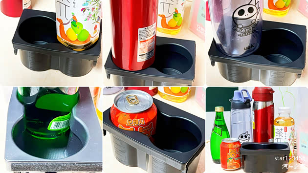 杯架也是车友吐槽的重点,细的瓶子会晃荡,粗的杯子放不下,比如脉动、茶派等等饮料,使用原车的杯架都无法放置