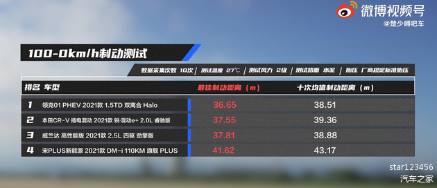 电动车扭矩大,如果轮胎抓地力不强,非常容易造成原地打滑,在同级别四辆国产和合资车测试中,原厂轮胎的宋PlusDMI刹车距离垫底,100-0km/h刹车测试,十次均值为43.17米。