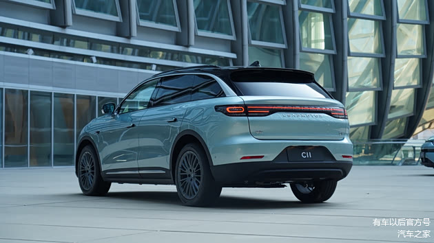 车尾的设计也是十分简洁的,没有很明显的亮点也没有很明显的缺点。贯穿式的尾灯,点亮后的辨识度极高。尾灯下方设有“LEAPMOTOR”的字样,精致感满满。