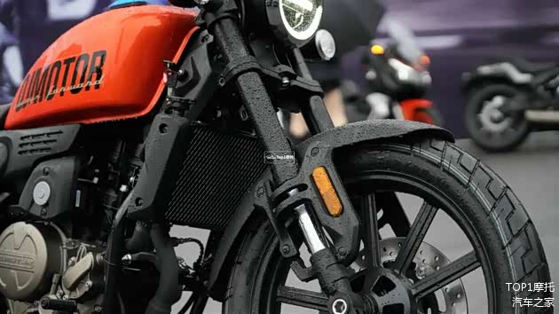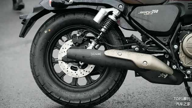 闪250的硬件颇为不俗,倒立式的前减震,不具备调节功能,带气囊的双边后减震,支持预载可调。在目前的250级复古巡航车型当中,这一组减震规格相当高了。