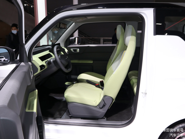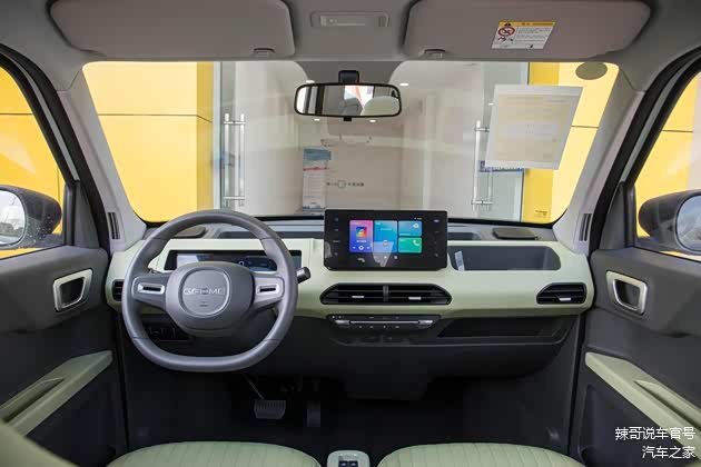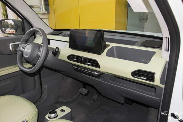 进入熊猫mini新春版宝藏熊的车厢,整个控制台还是比较有设计感,表面覆盖了大量的绿色硬质材质,仪表盘、副驾位储物格与中央出风口,组成了仿生状的“熊脸”,和车型命名契合的挺好。