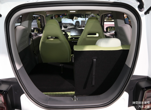 155/65 R14的小轮组让车身侧面显得比较呆萌,短小的车身没有太多前后悬,车身上有几条凹进式的腰线来增加层次感。我个人感觉后备箱车窗设计的有些别扭,将前后车身分成了两个不和谐的区域,不过审美这件事历来众口难调。车尾设计的平平无奇,这种低价位的纯电动小型汽车,确实也没有太多可设计的潜力。