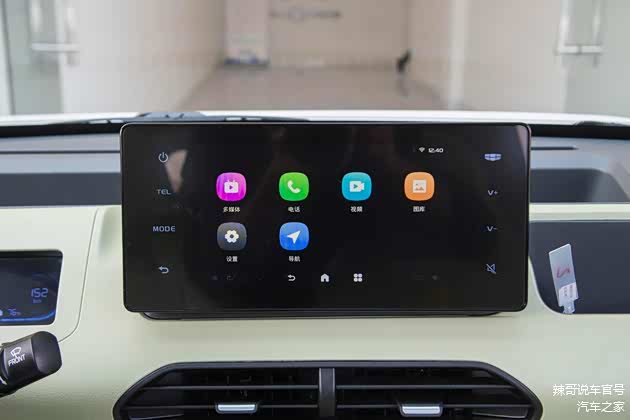 8英寸悬浮式中控屏支持倒车影像、蓝牙、导航、电话、天气查询等功能,此外还有原厂手机互联映射、语音控制、手机APP远程控制,可以对车门、空调进行控制,还可以诊断车况和车辆定位。虽然整体功能性不算丰富,但日常的短途代步足够了,而且还有视频和图库两个娱乐功能。