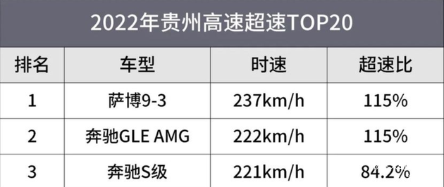 前几天,贵州交警曝光了2022年的超速王。萨博以237Km/h,惊人速度,碾压奔驰和宝马。