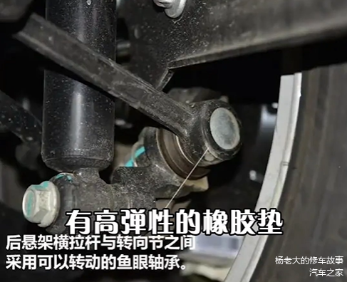 它的后轮带有,被动转向。悬架和车身间有高弹性橡胶垫,通过柔性连接,车辆转弯时受到车身横向作用力,从而发生形变,让后轮能够有一定的转向角度,从而实现“后轮转向”。
