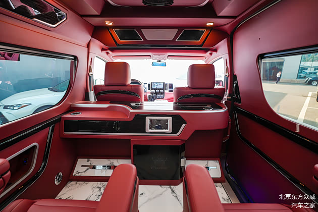 驾驶舱部分重新采用“黑白”色调进行搭配,融合了LM300的原色,体现出了尊贵与奢华,主副驾驶座椅不仅升级了四项电动调节,还贴心的配备了座椅加热,利用了车长的优势,即使后舱带隔断,也不会让身高190cm司机在驾驶时感觉到特别。