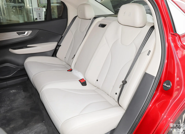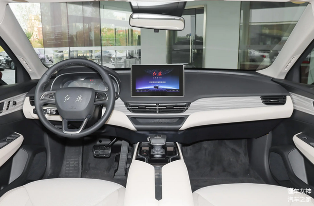 进入红旗E-QM5车内,象牙白配色看上去挺清爽,科技范围只能说中规中矩,悬浮式的中控大屏在10英寸,不算太突出,支持车联网以及OTA升级,下方是空调出风口。方向盘采用皮质材料包裹,支持上下调节,中间位置则是红旗中文标识。空间上会有很大优势,后排坐三个成年男性没有压力,我自己身高在1米73,相对较矮,坐到前排,头部空间富裕。