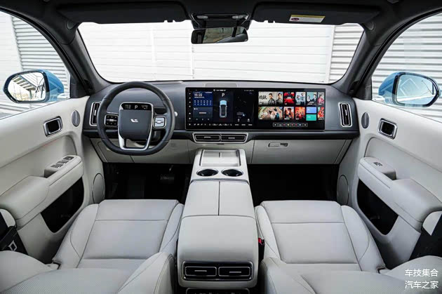 座舱内是一系列比较创新的设计,比如取消的仪表盘被方向盘上的安全交互屏与HUD抬头显示所取代,双15.7英寸触控屏完成了中控与副驾驶的贯穿覆盖,由于换挡设置为电子怀挡,扶手区也多出了更多储物空间。车辆的智能座舱SS分为Pro与Max版,在全部均可实现手势控制等高级交互方式的情况下,高精地图、4G+5G双网、杜比全景声等也是全系标配,而Max车型会加入双高通骁龙8155芯片,并为后排提供吸顶式15.7英寸娱乐屏。