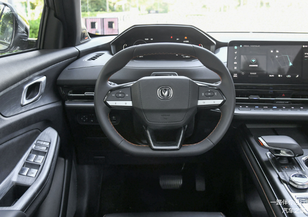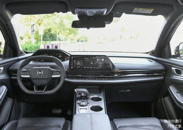进入汽车内饰部分,第二代长安CS55 PLUS给人最大的感受就是浑然一体,车内没有明显的雕刻痕迹。车内最显眼的自然就是12.3英寸的中控屏,配合左边10.25英寸的液晶仪表显示屏,科技氛围浓厚。