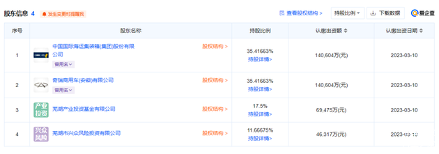 中集集团减持,与奇瑞商用车均持有联合卡车35.41663%的股份,同为第一大股东,但联合卡车的经营管理权交由奇瑞商用车主导。同时,联合卡车更名为“联合重卡”,品牌定位为“极致安全稳定的新能源重卡”,业务核心为“新能源”和“无人驾驶”。