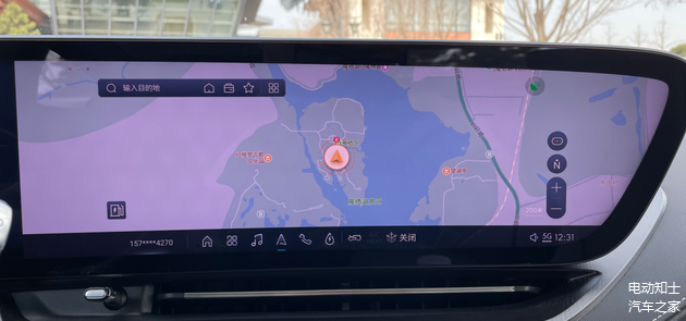显示效果方面,这块6K大屏没有让人失望,分辨率高达6008×934,并搭配了高通8155车机芯片,触摸操控流畅、画面显示清晰。由于它是一整块屏幕而非拼接, 因此像地图这种应用可以以两种显示模式无边界地显示在屏幕上,不仅容纳的信息量丰富,还能给人宽广的视野。