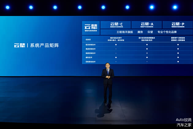 具体地说,云辇-C是智能阻尼车身控制系统,实现车辆舒适性和运动性的完美兼容;云辇-A是智能空气车身控制系统,让整车具备极致的舒适性、支撑性与通过性;云辇-P是智能液压车身控制系统,能够实现超高举升、四轮联动、露营调平等超强越野功能。