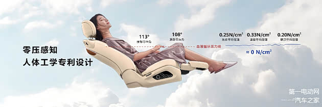 官方介绍,该座椅还原人体最舒服的28°仰卧姿势,躯干与腿部呈124°,让心脏和膝盖呈同一水平位置,将身体压力降至最低;搭配22向电动角度调节、加热/通风功能,以及座椅内的8颗震子,可以随音乐和电影音效律动,带来极致的观影效果。