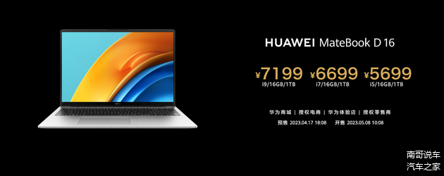 在价格方面,华为MateBook D 16新品i5版本售价5699元,i7版本售价6699元,i9 版本售价7199元,4月17日18:08,华为MateBook D 16新品全系将在华为商城、授权电商、华为实体店以及授权零售商等开启预售,并与5月8日10:08正式开售。届时用户可登陆华为商城、各大授权电商平台及华为实体店进行购买。