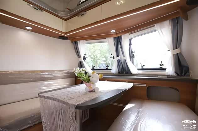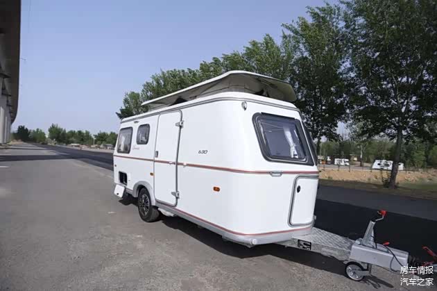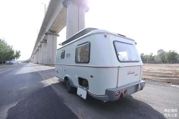 从外表来看大家第一反应来一定是,呦,这个房车和一般的拖挂房车不一样,复古风特别漂亮。第二眼感觉就是,哎~这个车好像在哪儿见过,如果关注进口房车的朋友应该会知道德国海姆集团有一款纯进口拖挂房车艾瑞巴托灵540,跟这个车外观上基本一样的,就整体来说这款车的外表还是特别漂亮的。