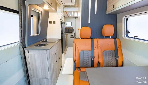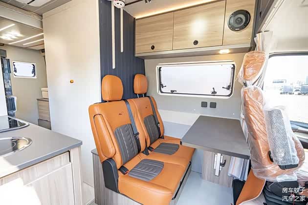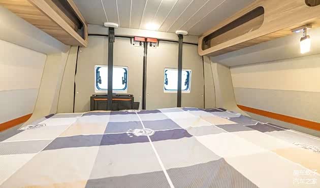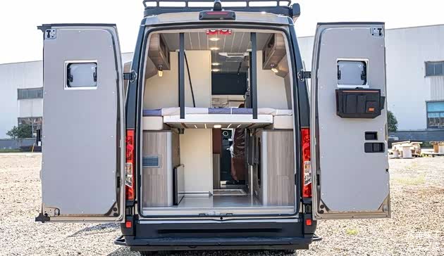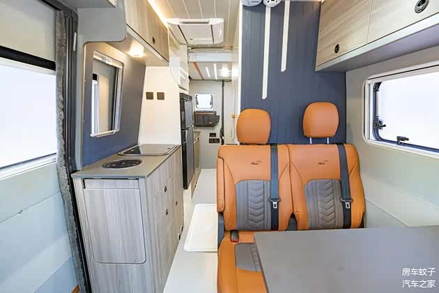进入车厢内部,你会发现大空间是瑞弗B型房车的灵魂,也是好用所在。工业风的撞色内饰搭配美观大气并且还实用。内部的家具板材均采用E0级环保板材及轻量化材质,提供更安全舒适的生活环境。
