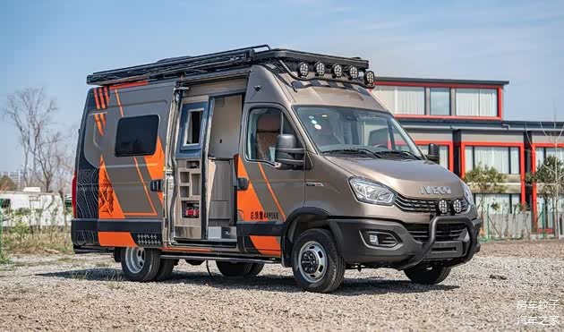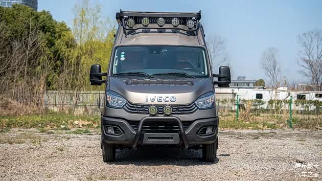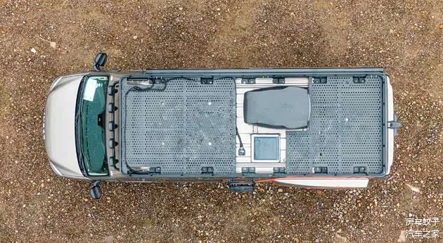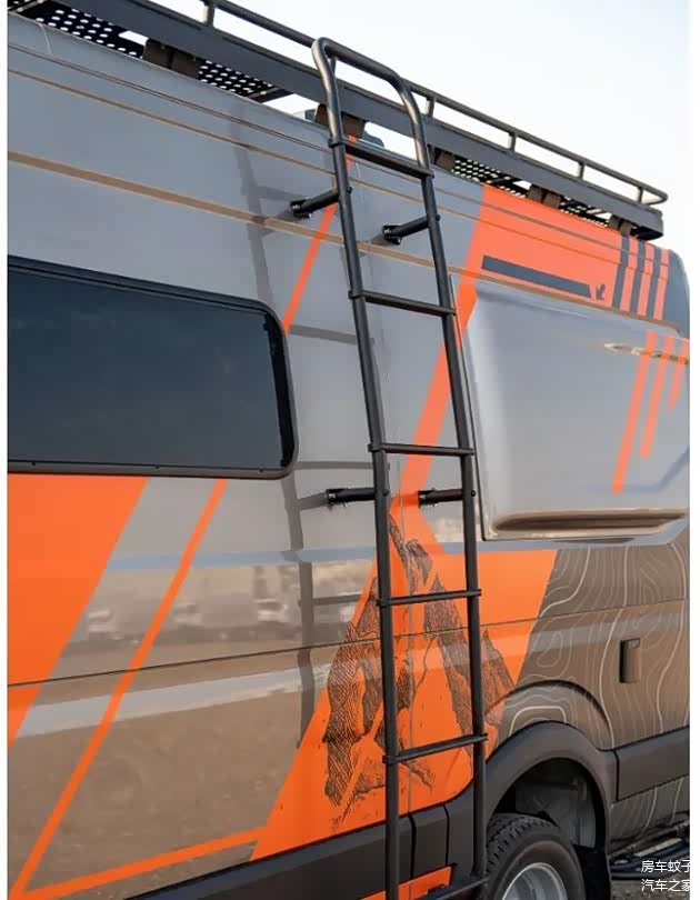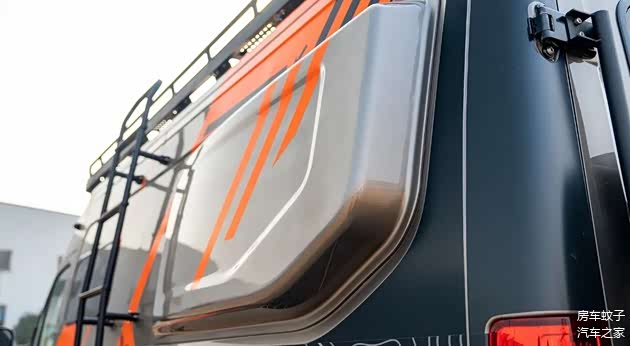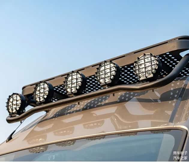 车辆外观我们看到的是超大越野探照灯,前防撞杆也加装了两个,让整体车辆看上去霸气且越野性十足。车身右侧是一个可当挂衣钩的长3.5米的遮阳棚,车身两侧瑞弗开发了两侧防撞踏步,并且在车身左侧还安置了一个上车爬梯,可以让你轻松上车顶,车顶平台可以自己DIY户外露营,也可以最大装配600W太阳能板,车顶平台最大承载200公斤。