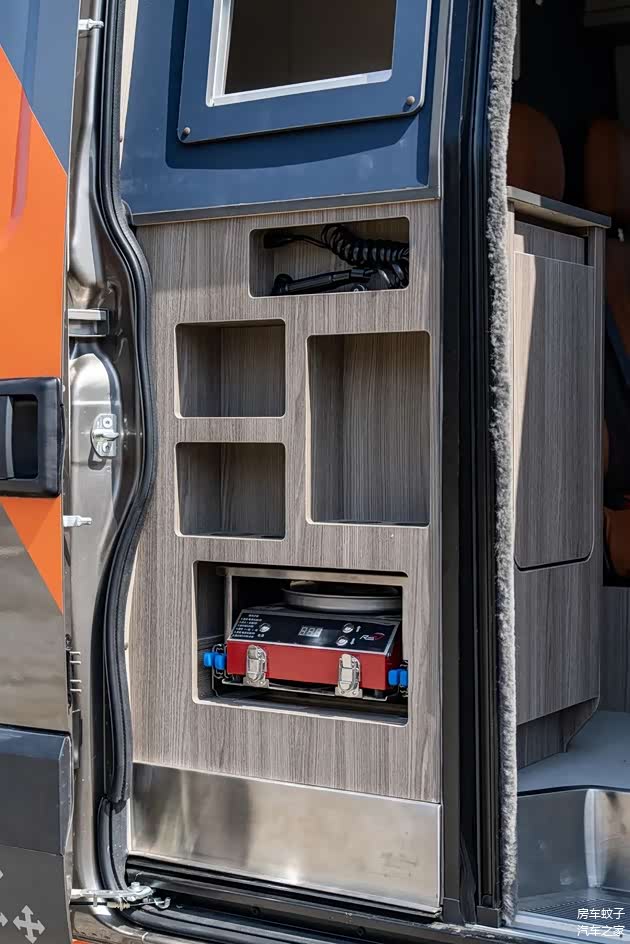 打开中门你会发现,瑞弗启界R800配置了一台外置抽拉燃油灶和户外出水口以及多个储物格,让你在户外也能轻松解决美食需求。还有贴合原车轮廓的防蚊纱帘也是必不可少的。