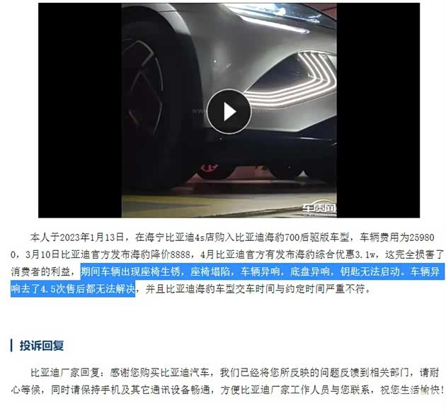 出现集中性投诉 比亚迪的品控可靠吗?