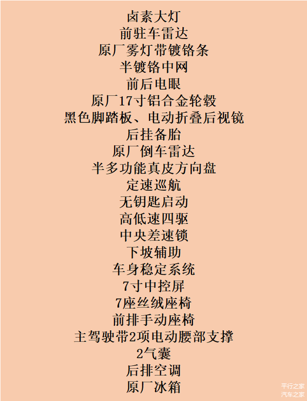 本期介绍的车型为EX-R 迪拜版,是最低配置,也有经销商叫两气囊无窗后挂备胎版,采用的是丝绒座椅,带有腰部支撑等功能,乘坐感也是非常出色。一台丰田车型,这个配置已经相当不错了,基本改一个座椅的材质就不用改动了,如果你喜欢织物,那更省事了。车内配备2气囊,另外还有上坡辅助等安全辅助功能,安全性方面也有所保障。另外:后挂备胎不用考虑小书包问题,不要信那些销售说的底挂改成后挂,那是要直接连着后门板都要换的,不然撑不住备胎的重力。