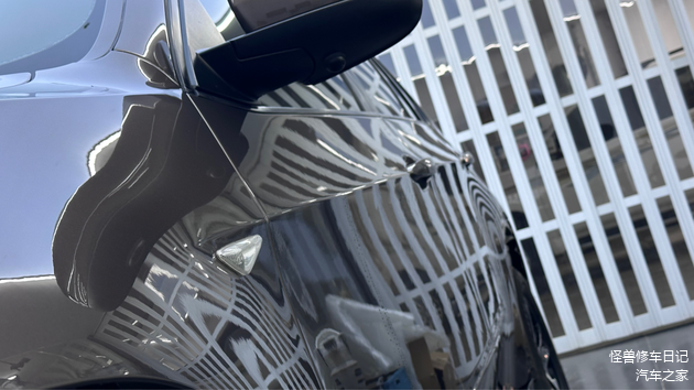 从灯光折射线条就可以看出,漆面的橘皮已经特别平整了。