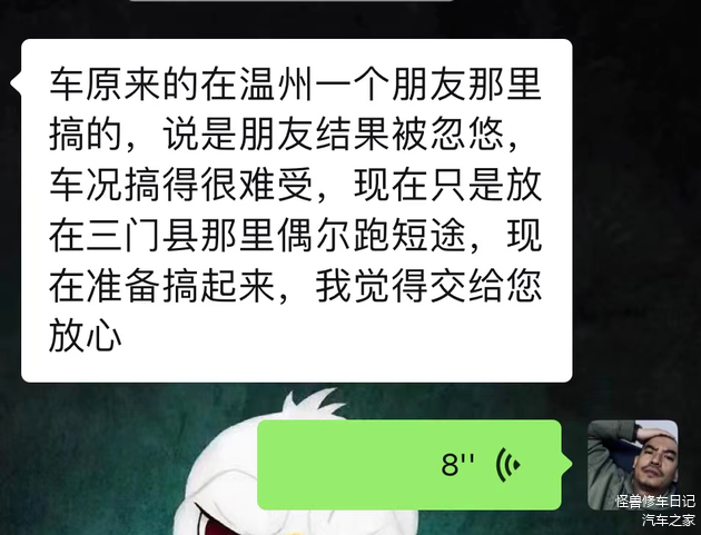 车主大哥说车子之前在温州一个朋友那里收拾过,结果被所谓的朋友忽悠了,如今车况相当难开,只能偶尔跑跑短途了。