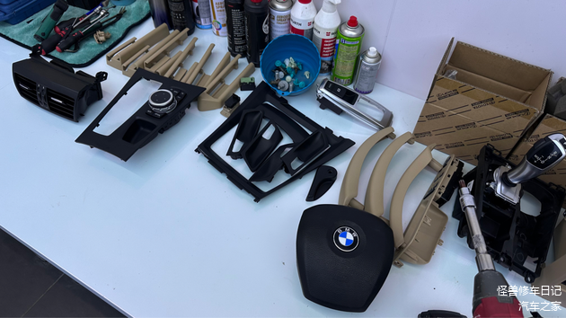 零零散散内饰小件,全部放在工作台做翻新修复。