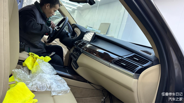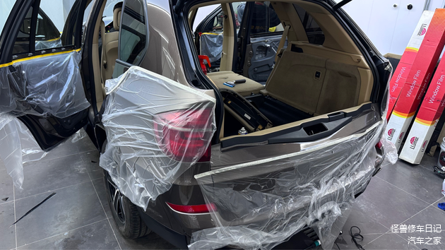因为全车玻璃膜要更换,所以先做好保护,别把油漆和内饰弄脏了。