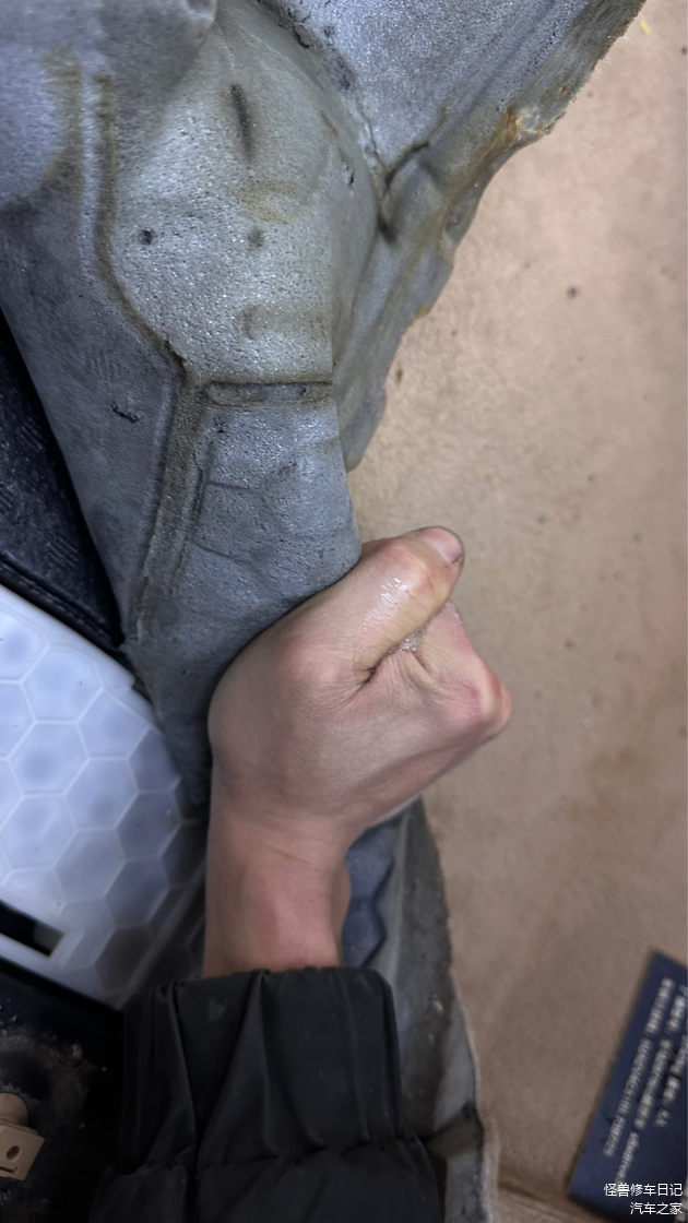 果然有惊喜...拆前排座椅的时候,拿出下面的海绵,直接挤出水了,副驾驶下面有积水,基本可以判断出天窗排水是有问题的。