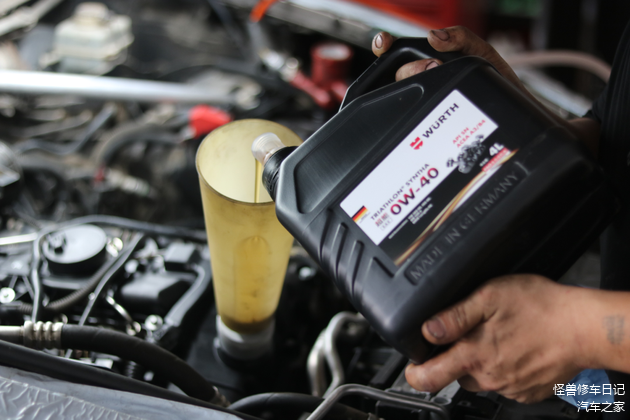 重新加入新机油,选用德国伍尔特0W-40机油型号。