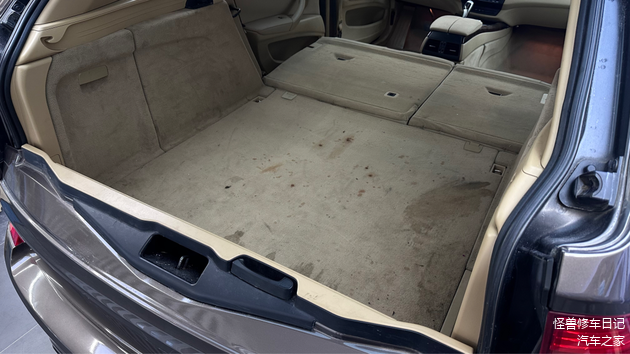 后备箱够脏的,这车地毯有点潮湿,感觉要有惊喜!