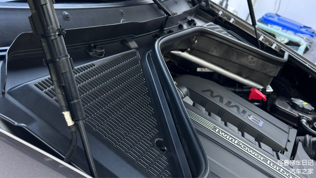 发动机深度清洁效果,这车来的时候没有发动机盖板,我挺纳闷这玩意咋还能丢啊?