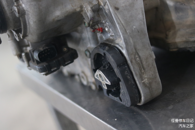 还没开始细查,就发现变速箱胶垫是断裂的。