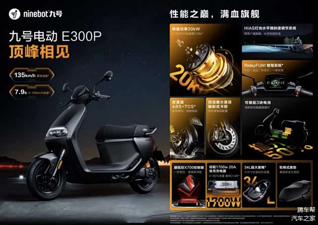 此次发布的众多新品之中,九号电动E300P是全场焦点,这一款主打高性能、高科技的旗舰电动摩托车。关于价格,九号E300P的起售价为24999元,E300P+SENA S50首发组合价格为26499元,2024款三电首发价为29999元。