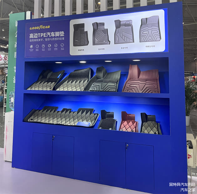 其中最吸睛的展品当属最新上市的GOODYEAR固特异全注塑高边TPE汽车脚垫,它是行业内的首款全注塑高边TPE脚垫,采用尖端创新的一体成型注塑工艺制造而成,其TPE材质含量堪称100%,具有优异的环保无甲醛、抗冲击性能、耐候性和防水防滑等性能,可承受75摄氏度的高温环境下的各种压力而不变形无异味,处于-20摄氏度的低温下不发脆不开裂。