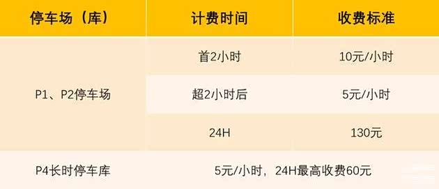 2、P1、P2、P4停车场免费停放时间为入库首日20分钟内;