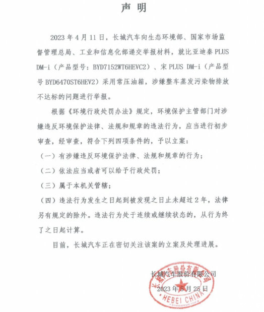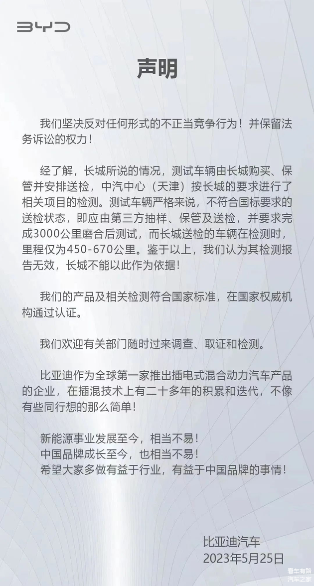 综上,目前可以得出的结论是,高压油箱是插电混动车型油气排放达标的常见解决方案之一,但并未唯一方案。比亚迪通过相关技术专利和技术路径,有能力在相关车型使用常压油箱的条件下,同时满足国家相关排放标准。因此,不论“举报”是否“厚道”,也无关打不打“感情牌”,单论产品技术合理、合规,比亚迪目前似乎并无硬伤。