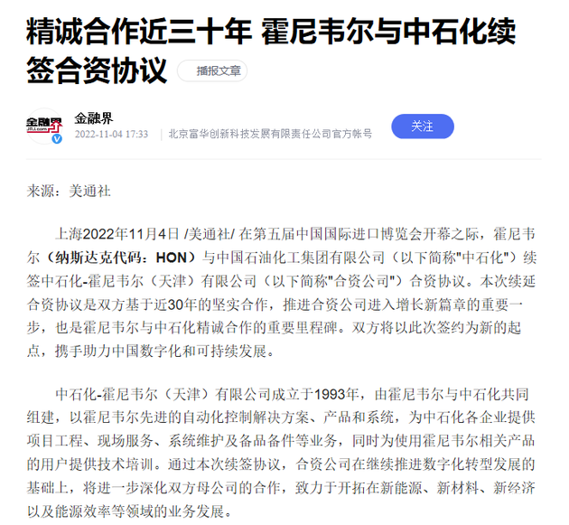 霍尼韦尔的业务领域之广泛,超乎了很多人的想象。它还是石油炼化领域的巨头,与中石化等巨头,也有数十年的合作历史。