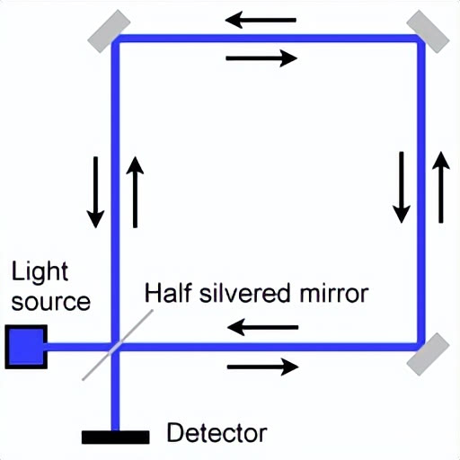 传统陀螺仪的原理比较简单,但精度难以满足太空探索的要求。因此霍尼韦尔开发了“环形激光陀螺”,它的工作原理是“萨格奈克效应(Sagnac Effect)”。为了方便理解萨格奈克效应,我们先来看一个干涉仪: