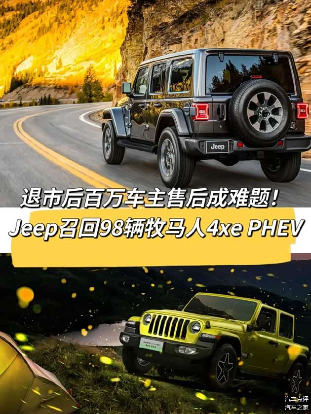 日前,车叔从相关渠道获悉,克莱斯勒(中国)汽车销售有限公司根据《缺陷汽车产品召回管理条例》和《缺陷汽车产品召回管理条例实施办法》的要求,向国家市场监督管理总局备案了召回计划。决定自即日起,扩大召回部分进口2.0T 4xe Rubicon四门版牧马人、2.0T 4xe Sahara四门版牧马人混合动力汽车,共计98辆。