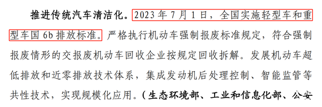 并且在去年11月,生态环境部等15部门就联合印发了《深入打好重污染天气消除、臭氧污染防治和柴油货车污染治理攻坚战行动方案》,其中再次提到:2023年7月1日,全国实施轻型车和重型车国6b排放标准。