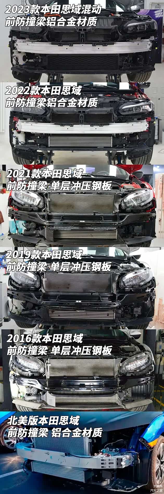 十一代之前拆过的国产思域,都是单层冲压钢板前防撞梁,而美国版早就是铝合金,现在的思域在前防撞梁方面,终于与国际接轨了,终于不区别对待了。