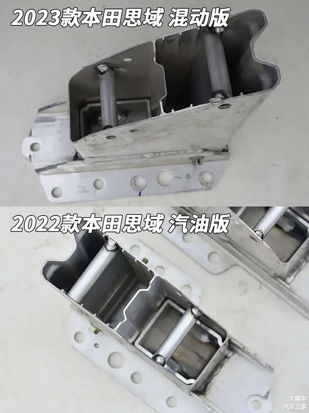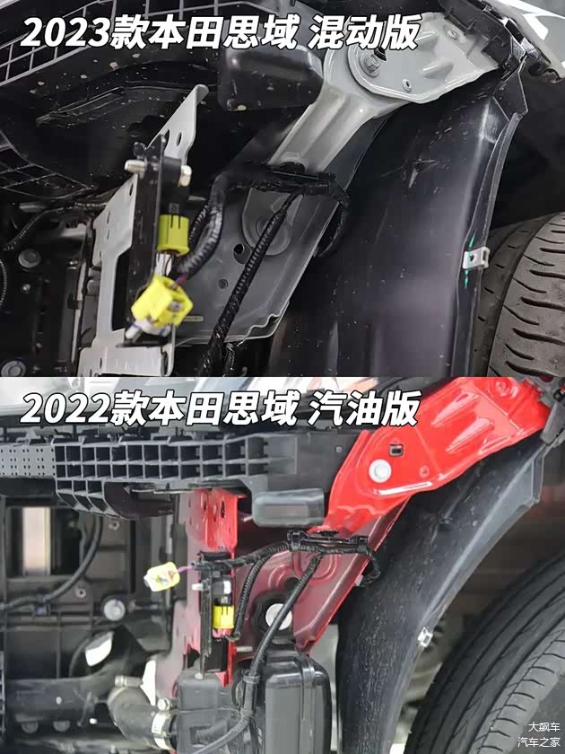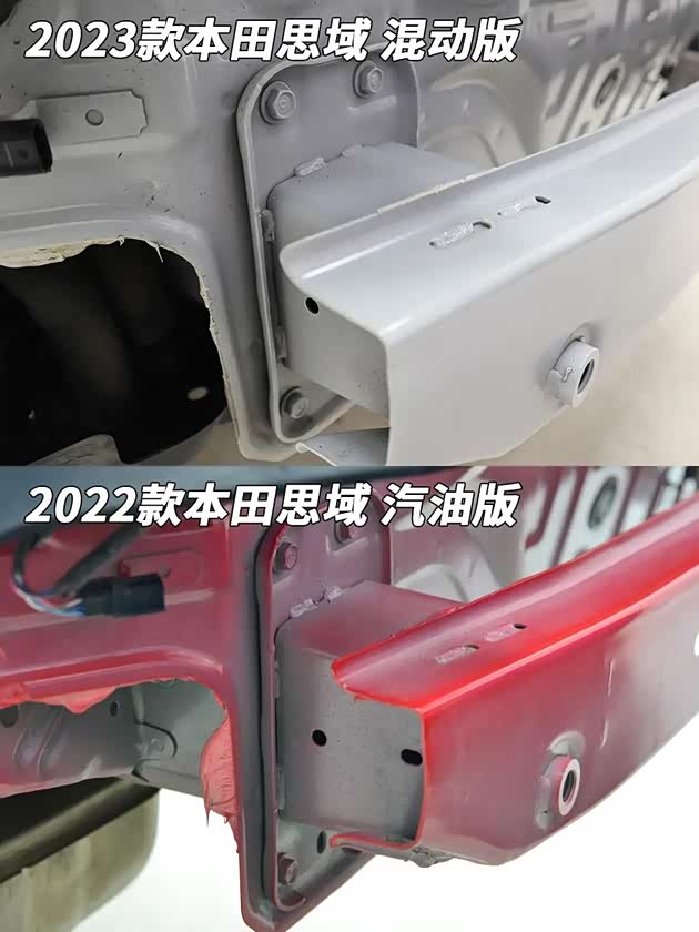 这辆十一代混动本田思域,防撞梁部分基本与汽油版没有差别。都是铝合金前防撞梁,比以往国产思域的钢板防撞梁有了明显提升,终于和国外用户同等待遇了。