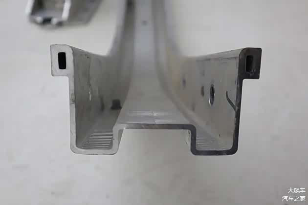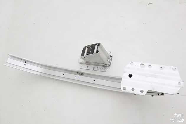 前防撞梁与汽油版一致,虽然是铝合金材质,但呈“C”字形,并不是封闭式结构,还是差一些。