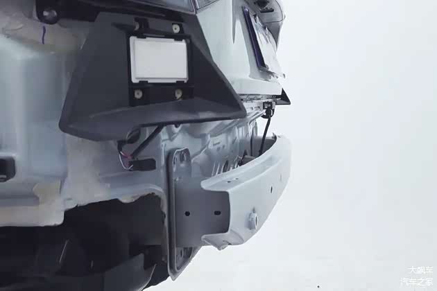 后吸能盒是独立可拆卸结构,带有溃缩褶皱和打孔,与汽油版保持一致。